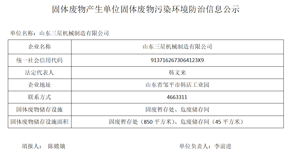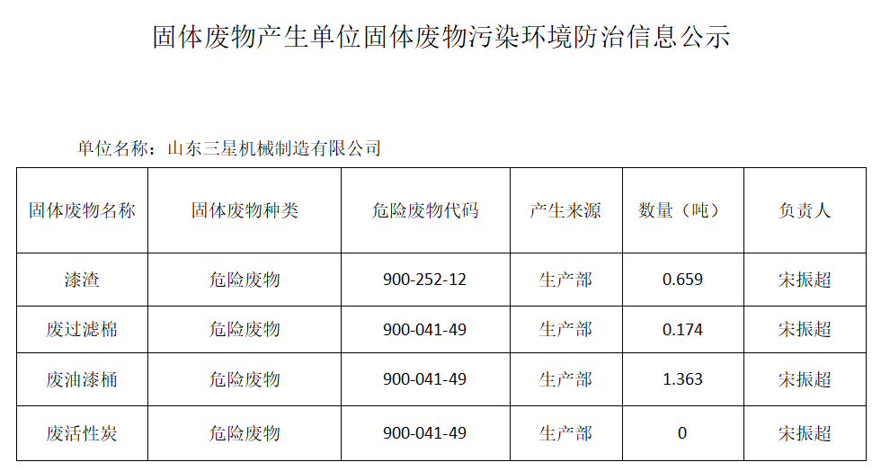 山東三星機(jī)械制造有限公司危險(xiǎn)廢物污染防治信息公示(2022)